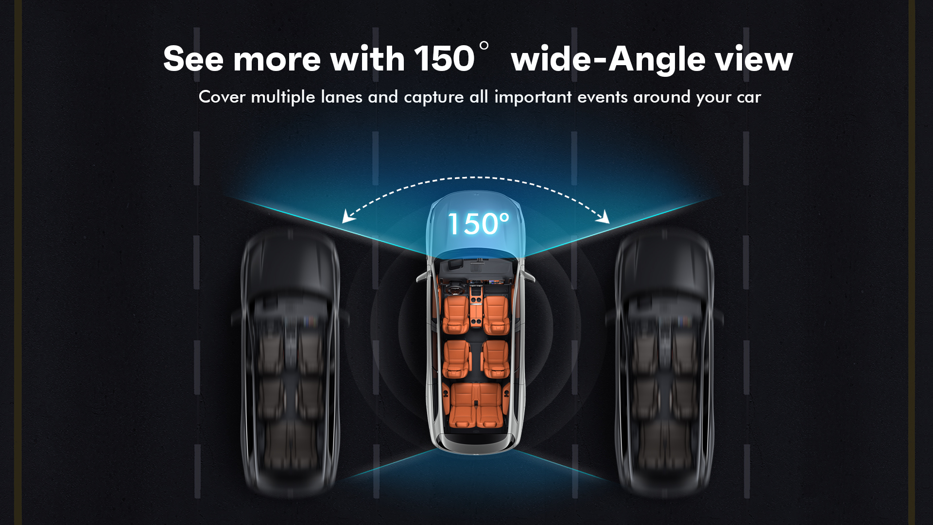 De ultragroothoeklens maakt een gezichtsveld van 150 ° mogelijk, bestrijkt gemakkelijk vier rijstroken en legt onvervormde beelden vast.