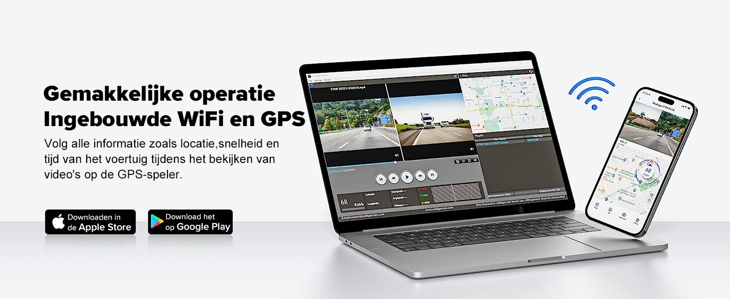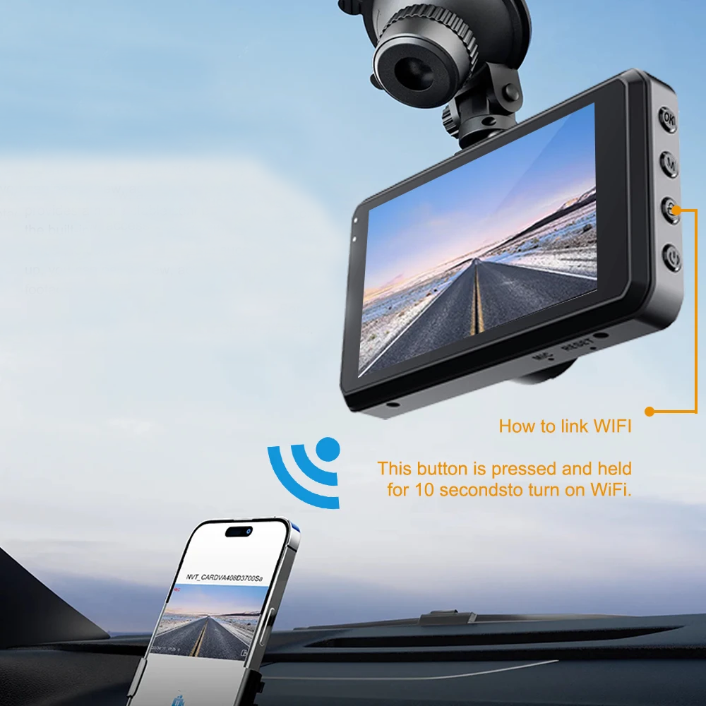 Zorgt voor een stabielere verbinding door verbinding te maken met uw telefoon via de ingebouwde Wi-Fi. Bijvoorbeeld opnametijd, gevoeligheid van de G-sensor, automatisch uitschakelen na het uitschakelen van de auto, etc..