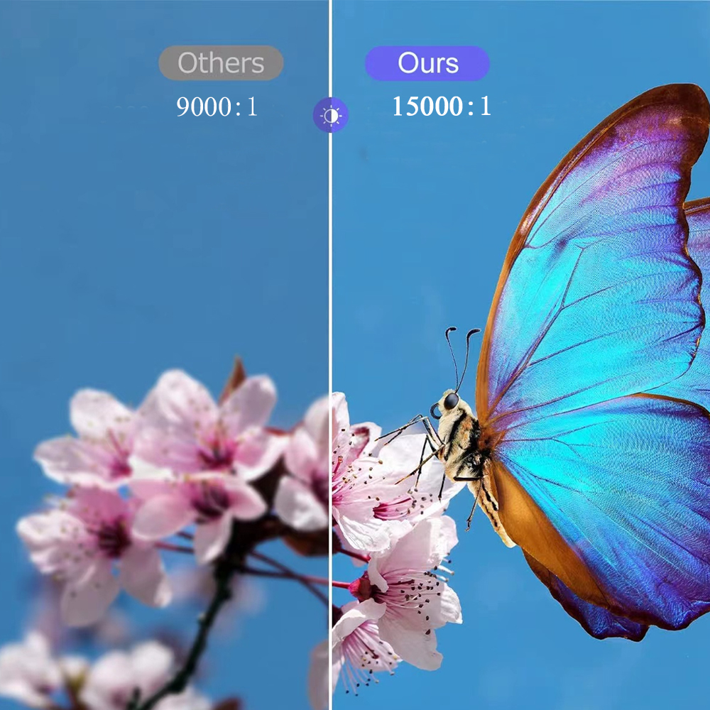 De hoge dynamische contrastverhouding van 15.000:1 met 99% NTSC-technologie zorgt voor een realistische, dynamische en kleurrijke projectiebeeldkwaliteit.