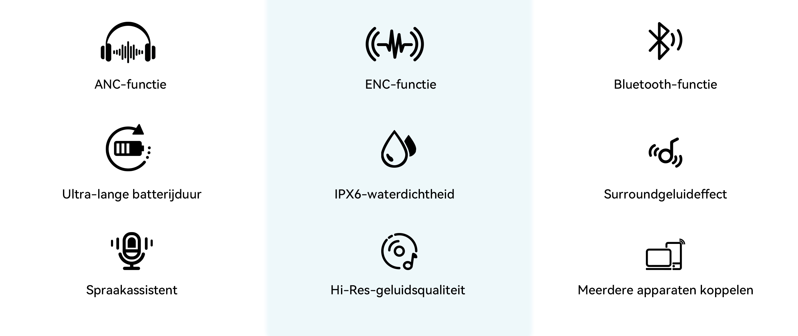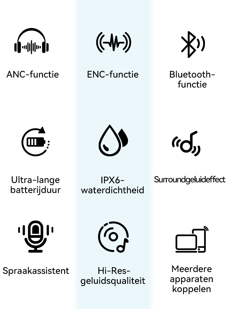 Met behulp van hybride actieve ruisonderdrukkingstechnologie identificeert het apparaat automatisch ruis en zendt het correctiesignalen uit, waardoor de diepte van de ruisonderdrukking nog verder wordt verbeterd.