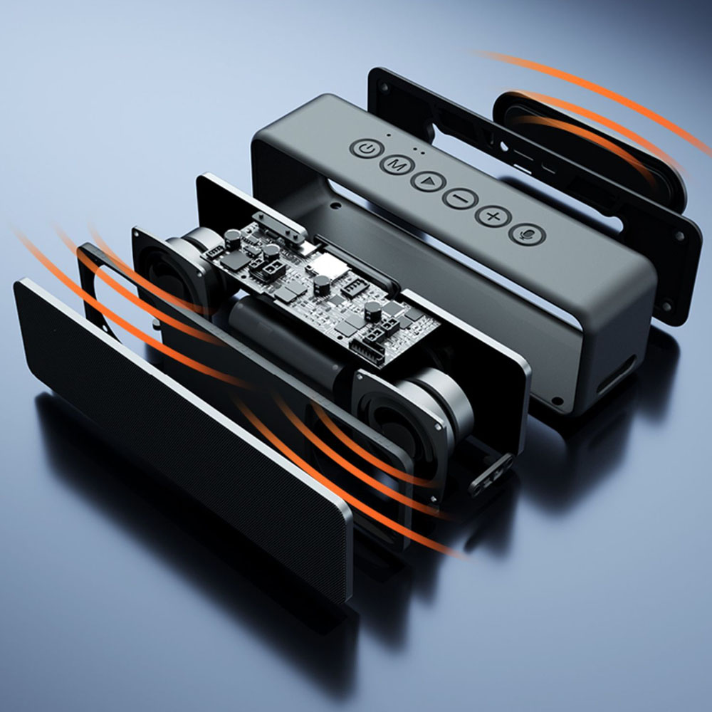 Uitgerust met een 4 ohm/2 inch full-range interne magnetische luidspreker, 30 W dual sounding units en passieve diafragma-units, voor en achter tweeweg tweekanaals geluidsgeleide geluidsholte met ijzeren gaas met hoge dichtheid, voor diepere basprestaties, nauwkeurig en krachtig.