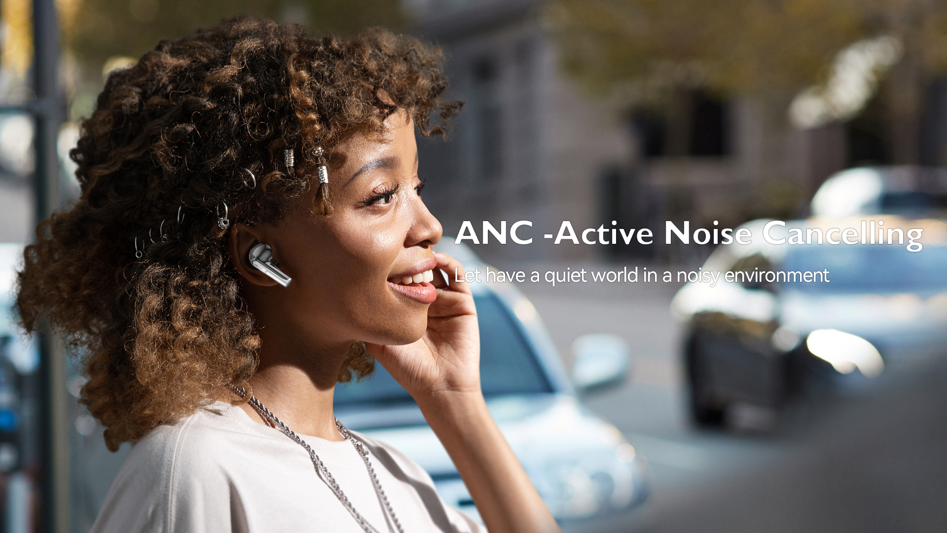 Actieve Noise Cancelling (ANC) blokkeert voortdurend ongewenste externe ruis Schakel over naar de Transparantiemodus als u de wereld om u heen wilt horen. Naar buiten gerichte microfoons laten de geluiden uit uw omgeving weer binnen voor een natuurlijke luisterervaring