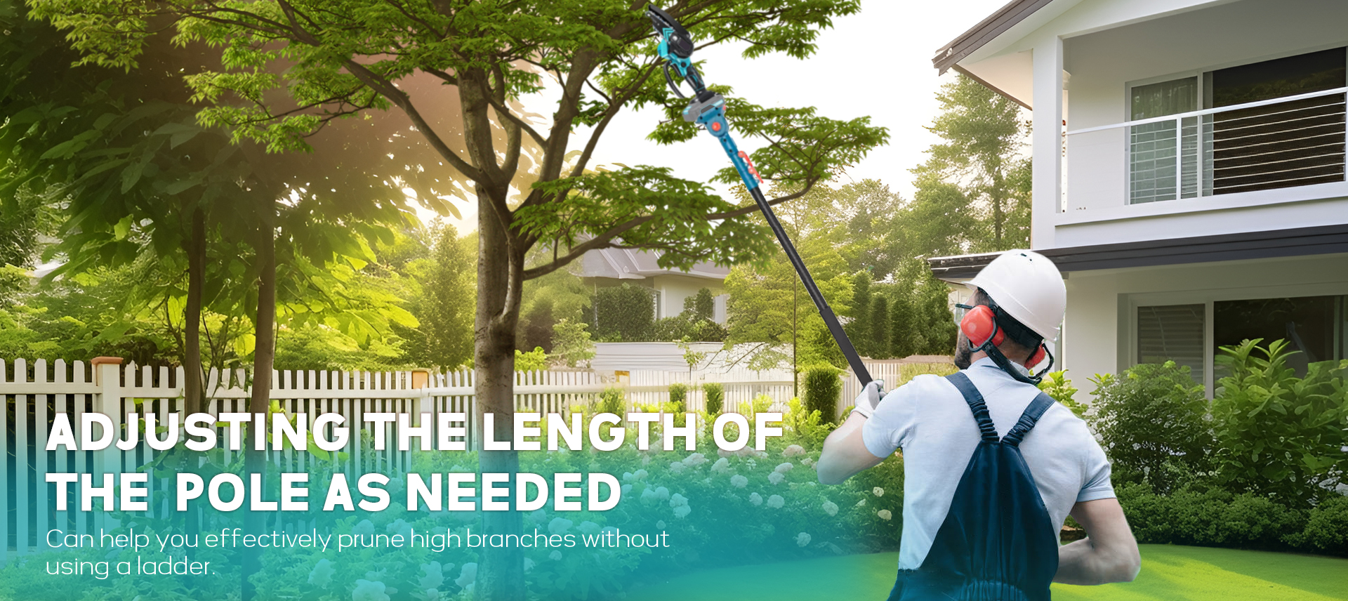 Het is voorzien van een veiligheidsbeugel om uw veiligheid te garanderen tijdens het snoeien en zagen van takken. Het voorkomt effectief dat zaagsel wegspat.