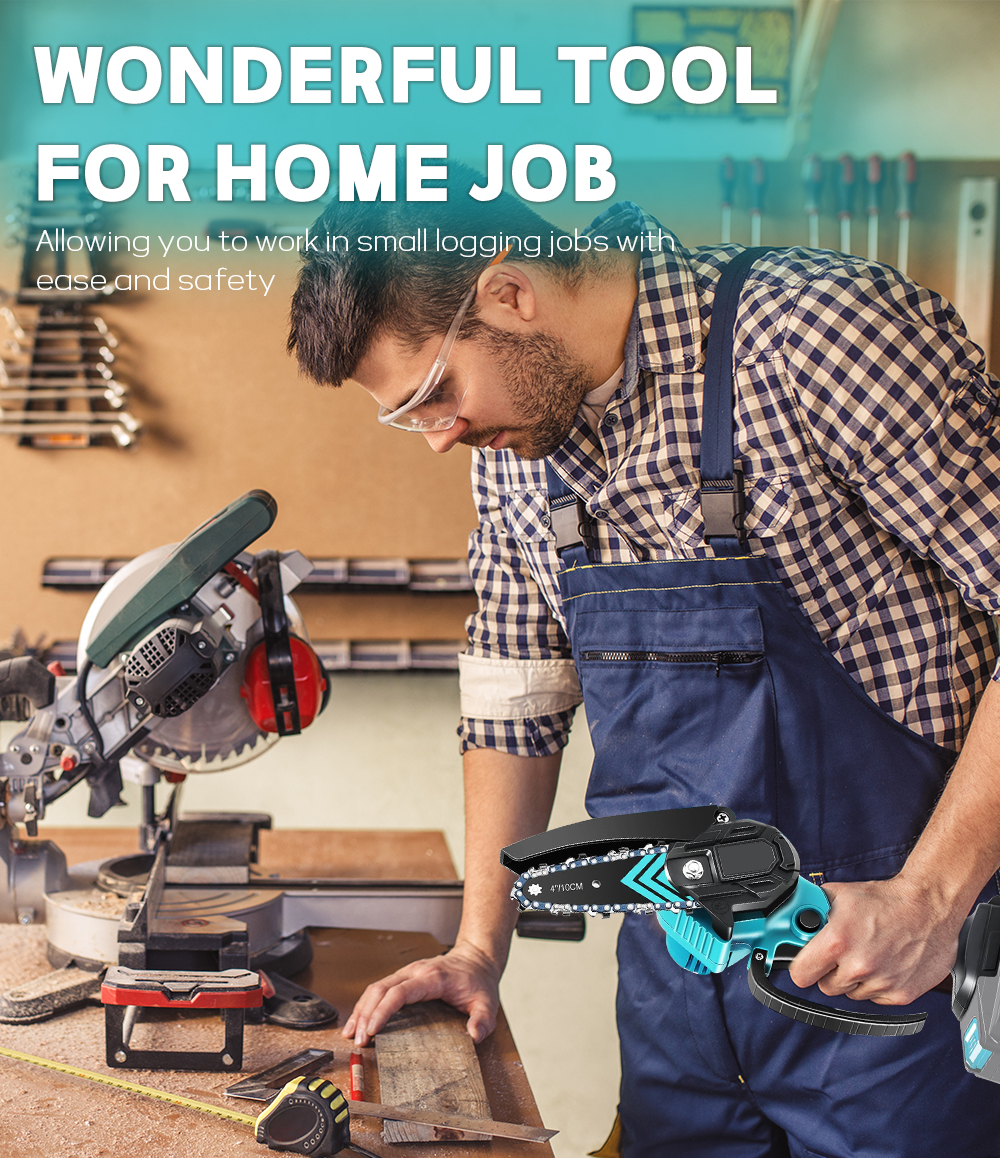 Dankzij het effectieve ventilatie- en warmteafvoerontwerp brandt de motor niet door, waardoor u met de minikettingzaag veiliger en stabieler kunt werken.