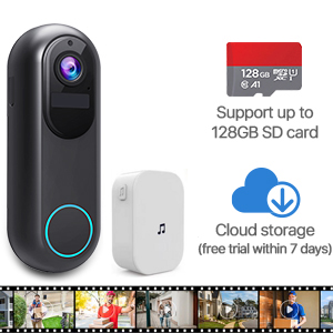 Ingebouwde oplaadbare batterij met hoge capaciteit (5000mAh*2), en ondersteuningsbatterij en bestaande bedrading. De installatie en de verbinding van de deurbelcamera, de gong zijn 100% draadloos, waardoor u geniet van het gemak van geen stopcontacten of wirwar van draden.
