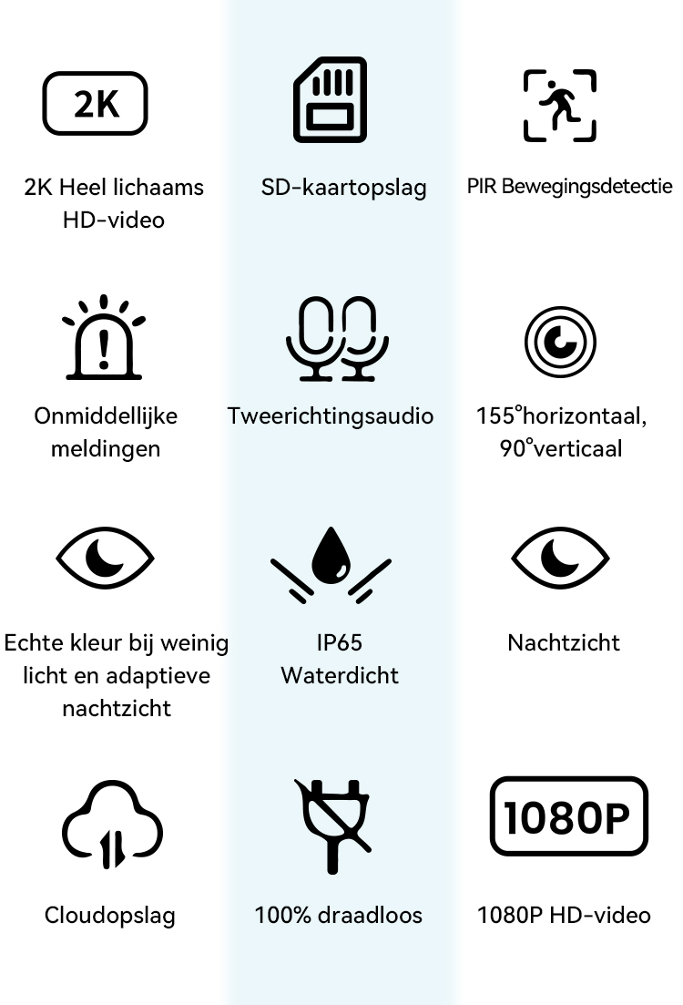 Ingebouwde PIR-sensor voor menselijk lichaam, identificeert nauwkeurig menselijke lichaamsinfraroodsignalen, waardoor valse alarmen effectief worden verminderd. Dubbele AI-humanoïdedetectie, lokaal en in de cloud, heeft een sterkere rekenkracht en is veiliger.